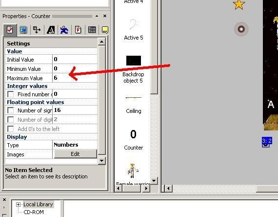 First set the minimum value of the counter to -1 and the maximum to 7. You can do this in the properties of the counterobject (frame editor).is there any way the letter counter could keep cycling through the notes A through G if you kept pressing the right arrow, and backwards through the same letters continually if you kept pressing the left arrow?