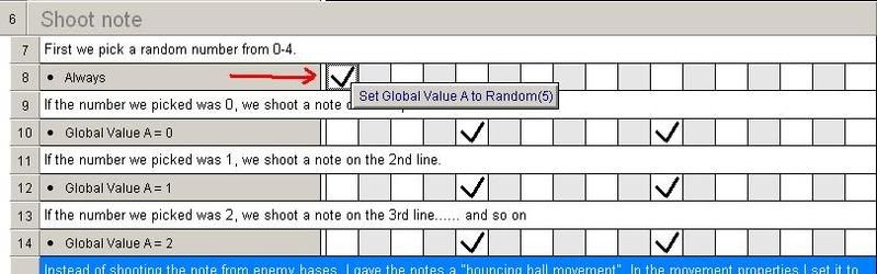 If you right click that action and choose "edit" you will be able to change the locations where the note is shooting from. Just drag and drop it anywhere!Code:-> Create "note" at (660,142) layer3.