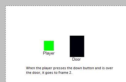 Do you know how to make it so if my character is on a door object and I hit the down arrow, I jump to another frame? Or I hit down on a chest and end up receiving a pistol?